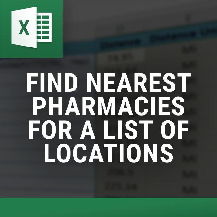 The Nearest Pharmacy Locator is the easiest-to-use tool of its kind. You can locate nearest pharmacies directly in Excel in three Easy steps.